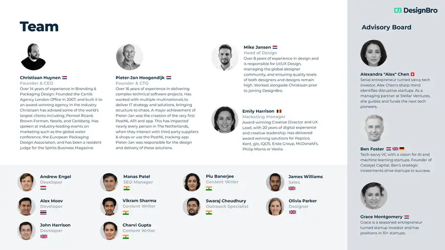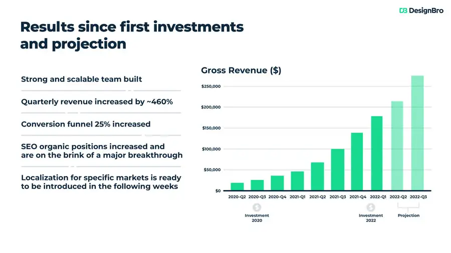 At this moment in time you have probably spent a lot of time and effort into your business idea. Now it's time to show it to the world. Let DesignBro help you to present this in the best way possible, by getting a custom made pitch deck design.