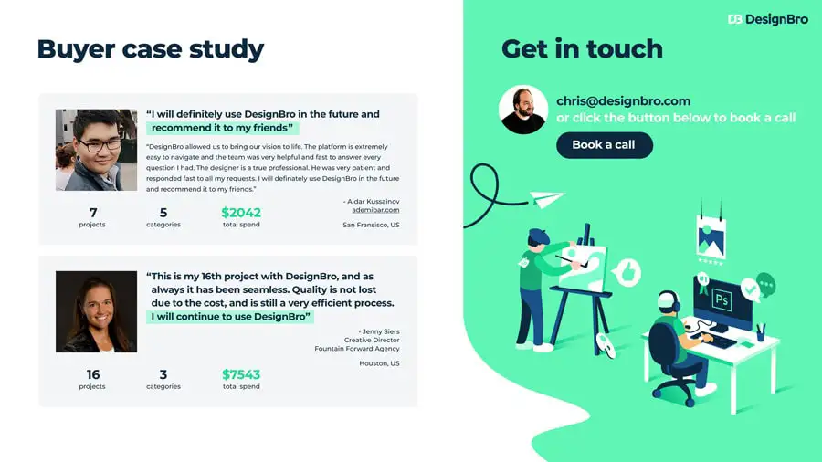 At this moment in time you have probably spent a lot of time and effort into your business idea. Now it's time to show it to the world. Let DesignBro help you to present this in the best way possible, by getting a custom made pitch deck design.